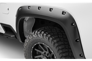 Enhance your truck's appearance and functionality with Bushwacker Pocket-Style Fender Flares. These flares are crafted from high-quality Duraflex 2000 ABS, ensuring durability against harsh conditions while maintaining a sleek look. The pocket-style design with faux stainless-steel bolts adds a bold, off-road aesthetic to your vehicle. Designed for easy installation, most models feature a no-drill process, using existing vehicle holes, with some requiring minor trimming. Whether for style or protection, these flares offer reliable coverage for your oversized tires and conform to local tire coverage laws, making them an ideal choice for truck enthusiasts.